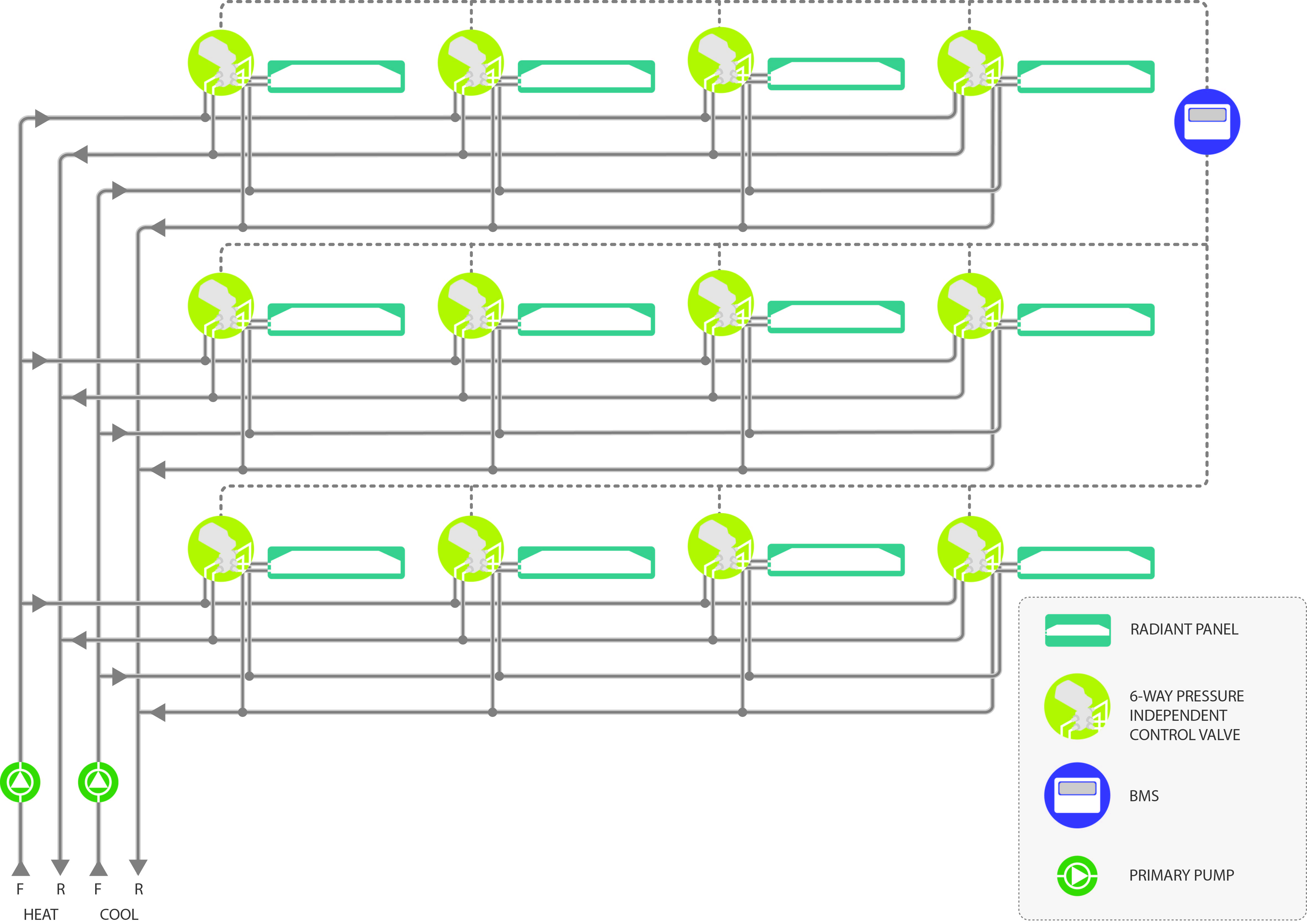 - Simple installation with only one 6-Way PICV valve and one actuator.